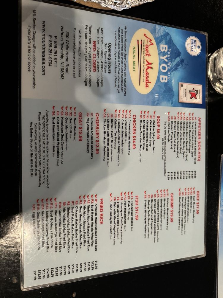 Mount Masala, a Himalayan/Nepalese-Indian restaurant situated in Voorhees Township, NJ, offers a diverse menu with vegan and vegetarian options. The restaurant embraces Asian and women-owned ownership, making it a unique culinary experience. Specializing in flavorful appetizers like Vegetable Momo Steam, Chicken Lollipop, and Chicken Momo Sizzling, Mount Masala showcases the rich fusion of Nepali cuisine. Customers praise the friendly service and relaxing atmosphere, with standout dishes like the Jhol Momo and Halal meat offerings receiving high acclaim. While some found the portion sizes to be a bit small for the price, the overall dining experience at Mount Masala is described as a must-try for food enthusiasts. The restaurant's ambiance and affordable prices make it a popular spot for casual dining with friends and family. If you're looking for a taste of authentic Himalayan and Indo-Chinese flavors, Mount Masala's unique offerings are definitely worth exploring.