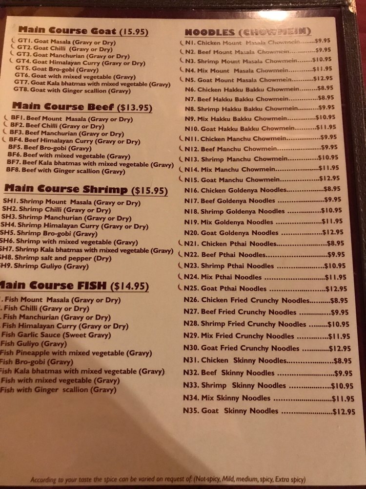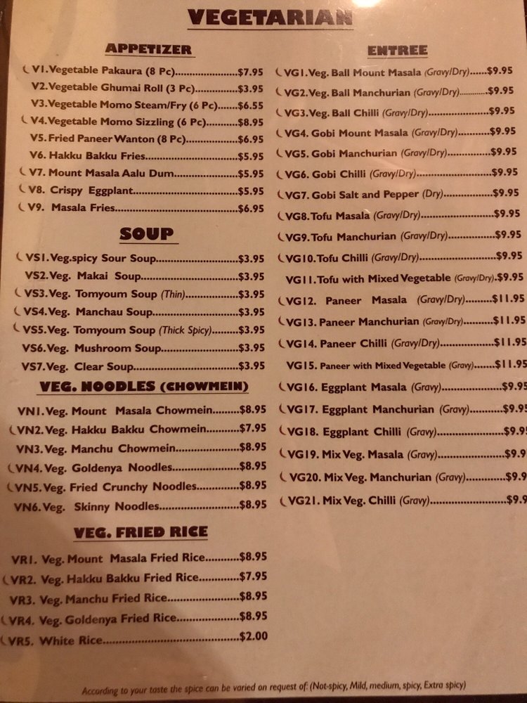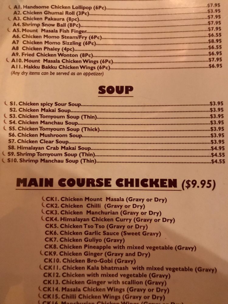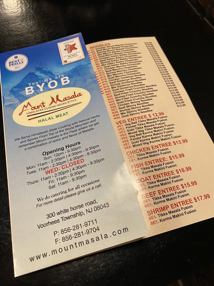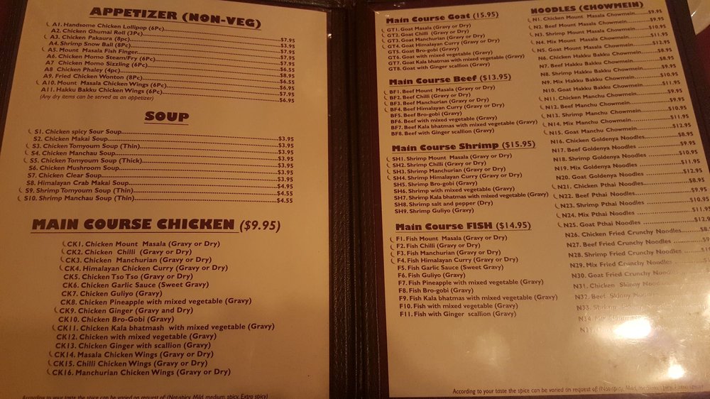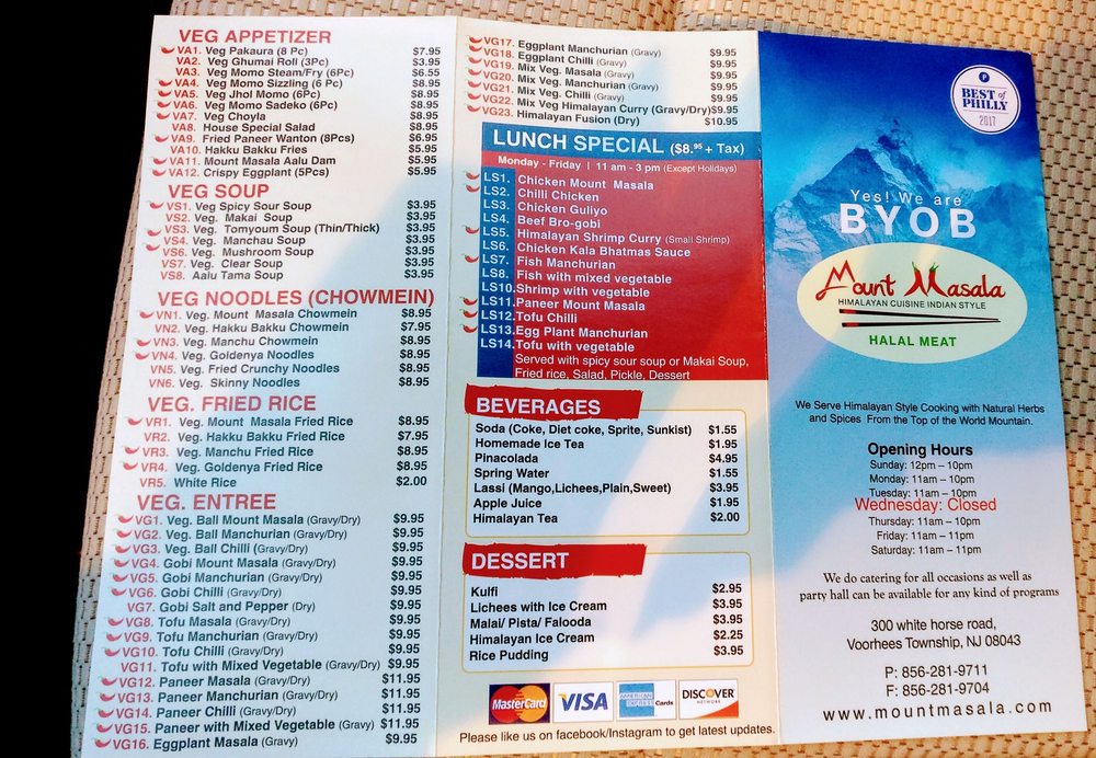 Mount Masala Menu