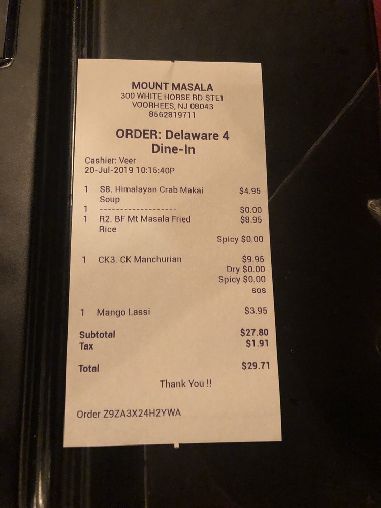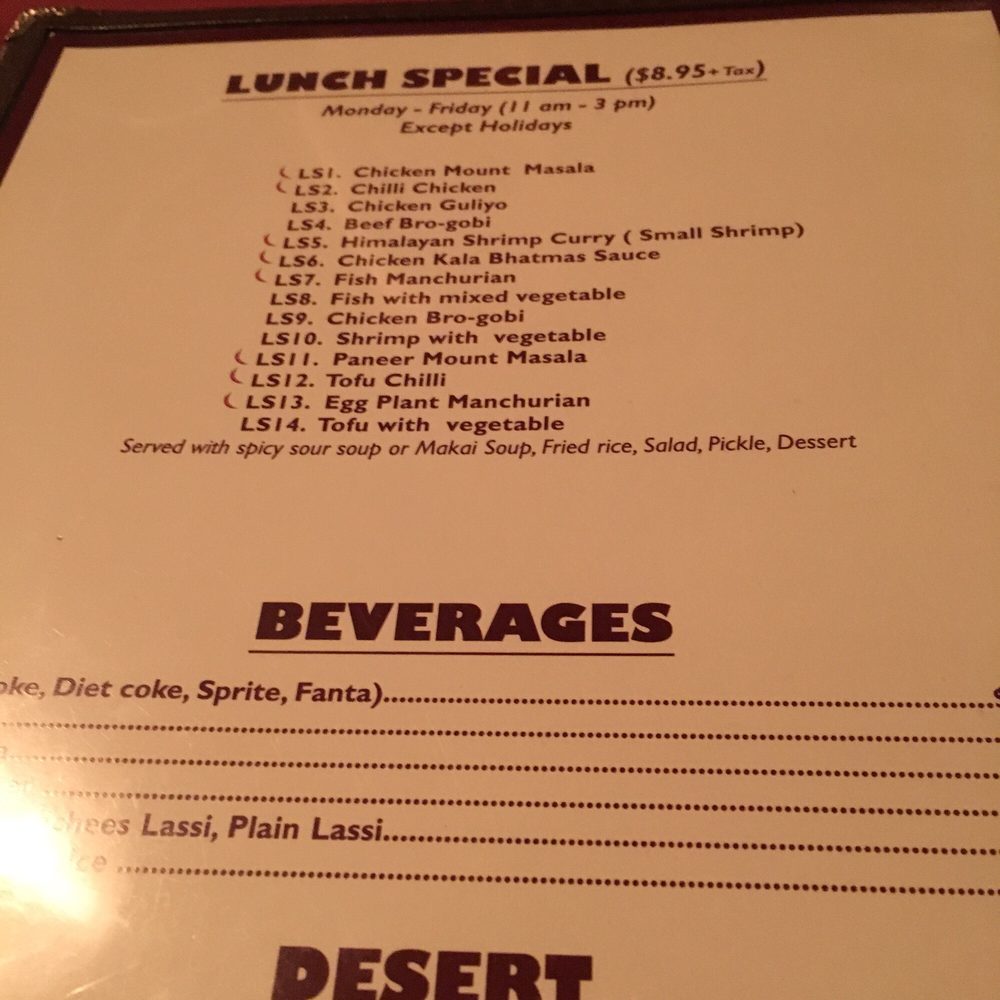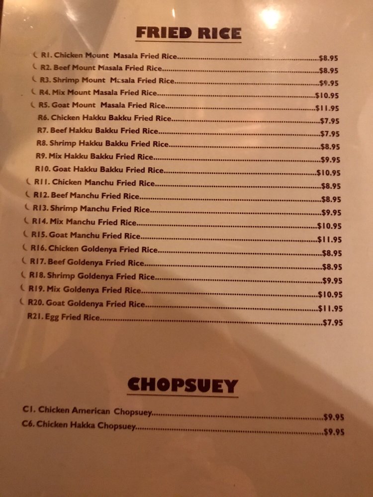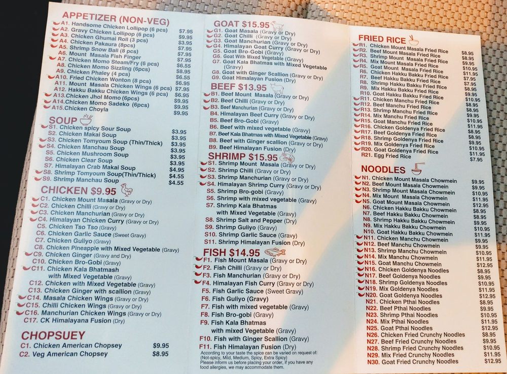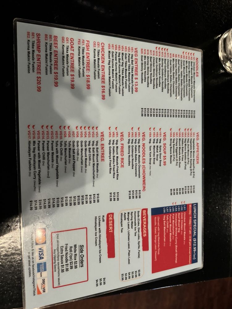 Mount Masala Menu